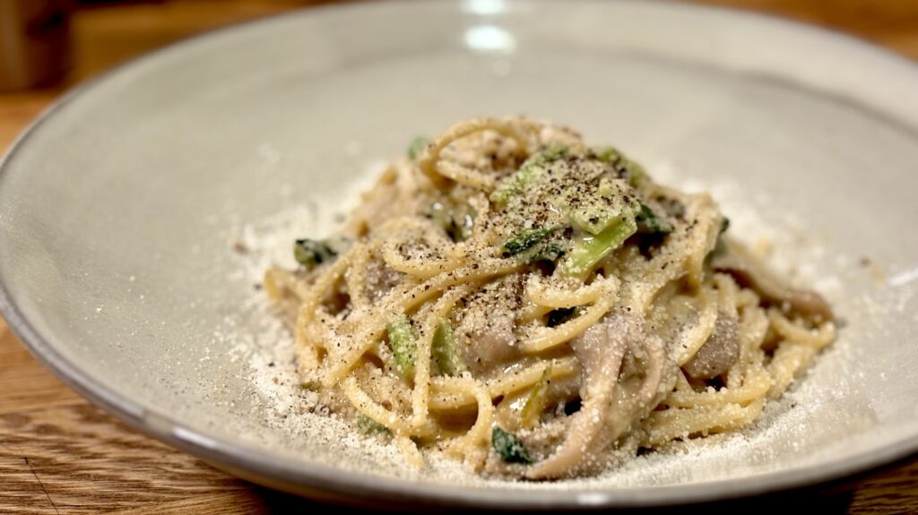 🍝 小松菜と舞茸の豆乳カルボナーラ