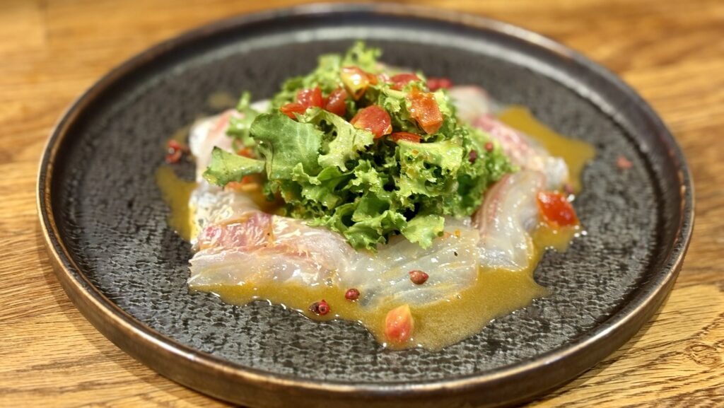 🐟 真鯛のカルパッチョサラダ・トマトドレッシング × ヴェルメンティーノ・ディ・サルデーニャ(イタリア)