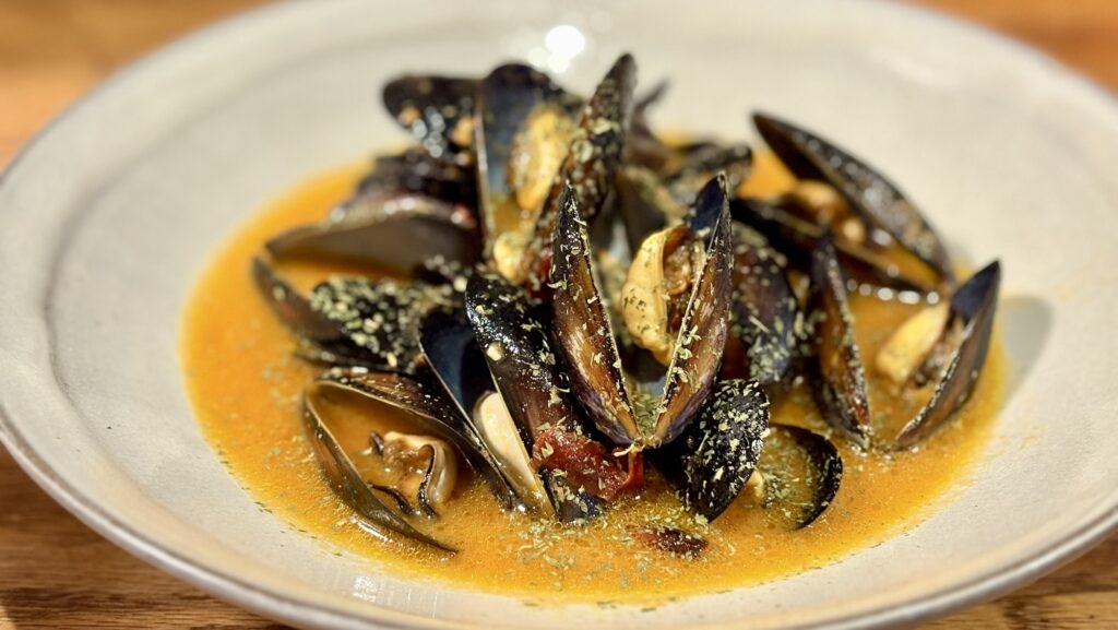 海のミネラルを思わせる軽い塩味が、ムール貝の旨味とぴたりと重なる。