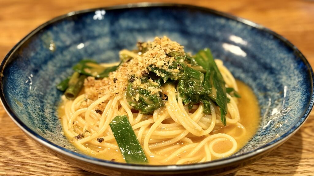 九条ねぎのスパゲッティ(ムール貝のソース・香草パン粉)
