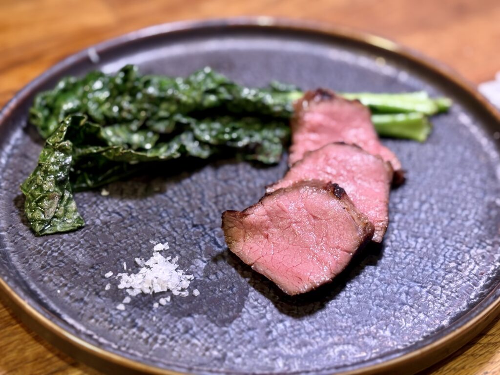 - 仔牛は低温調理で芯を作り、焼きは一瞬だけ
