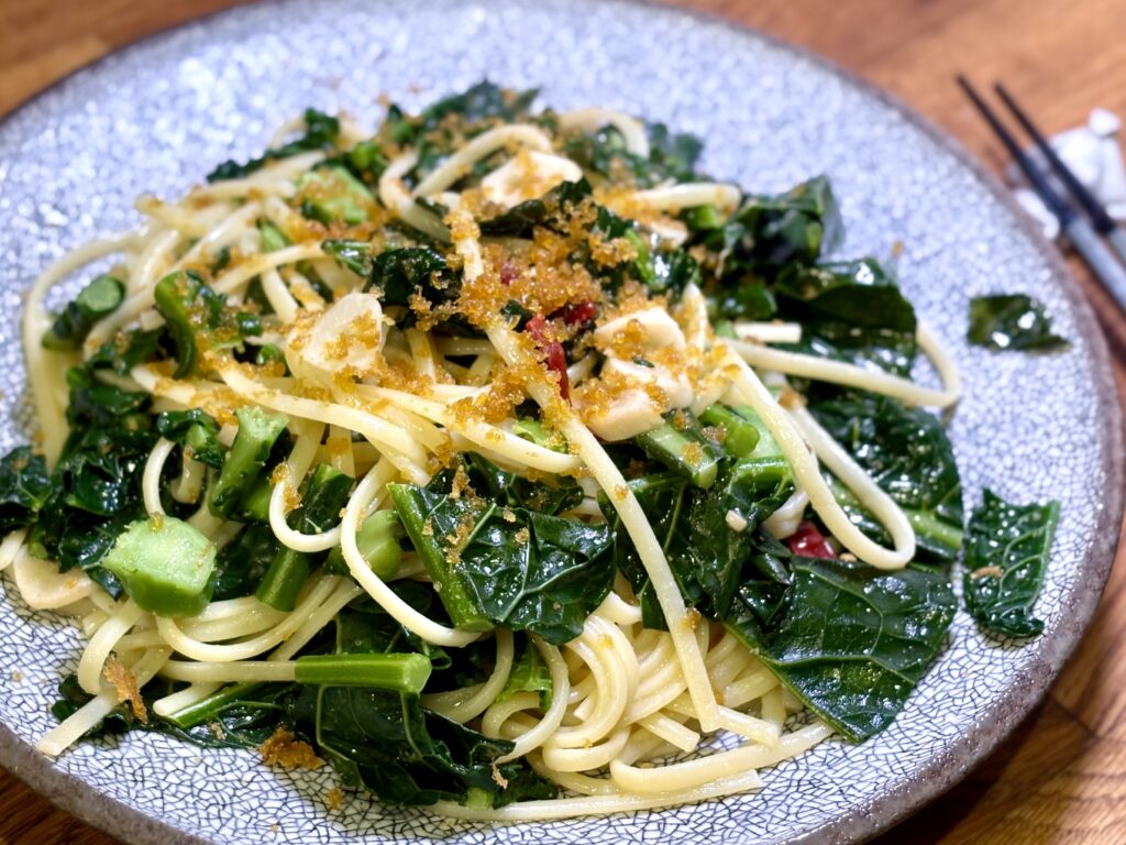 からすみの卵黄由来のアミノ酸と、青菜のビタミン。