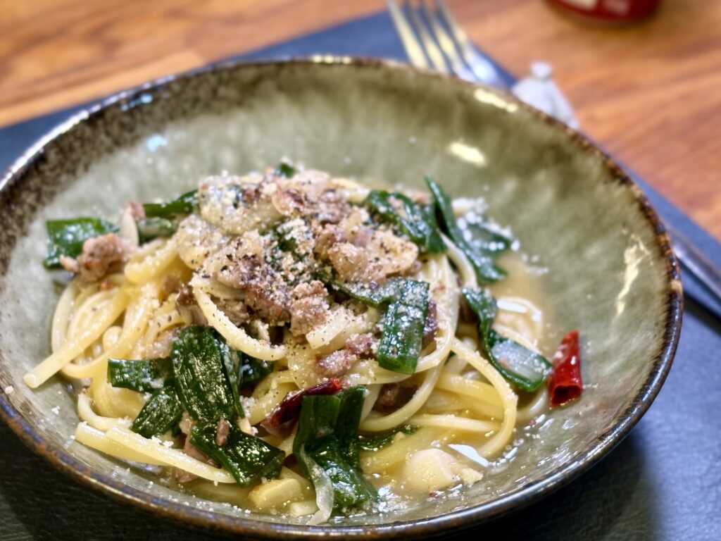 ④ ラムランプ肉と葉玉ねぎの白ラグーリングイネ(パスタ)