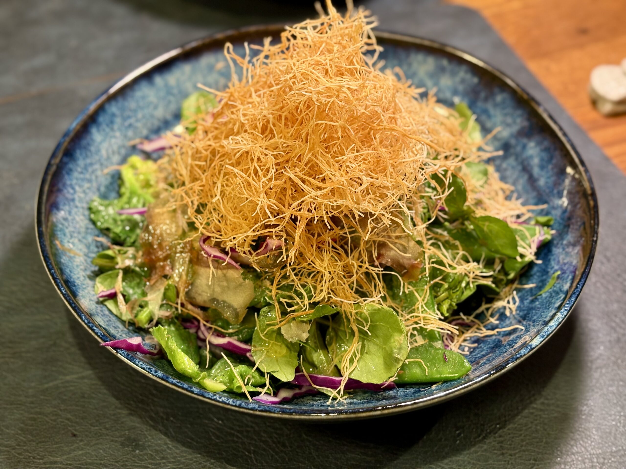 📷 左👉カダイフ山サラダ(ノンフライ)・右👉パリパリカダイフサラダ(フライパンで揚げ焼き)