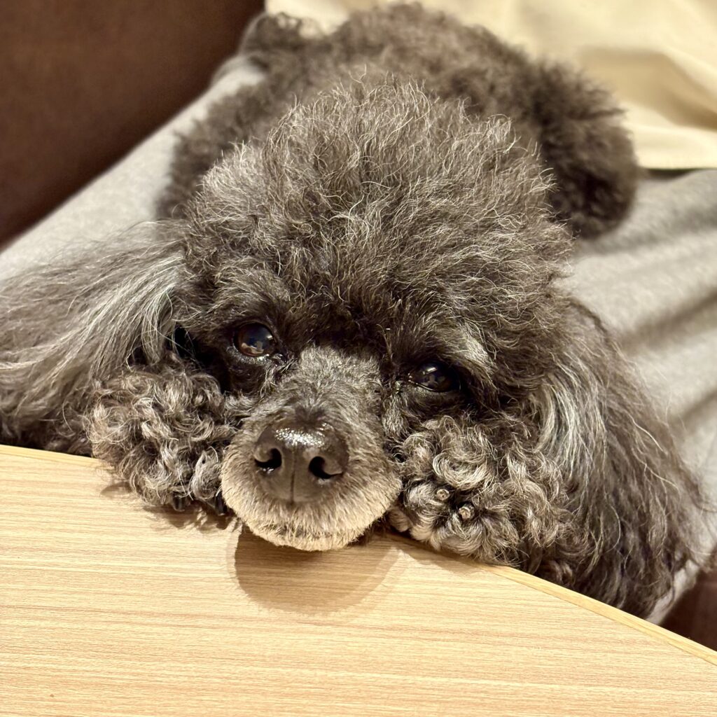 テーブルにそっとアゴを乗せ、