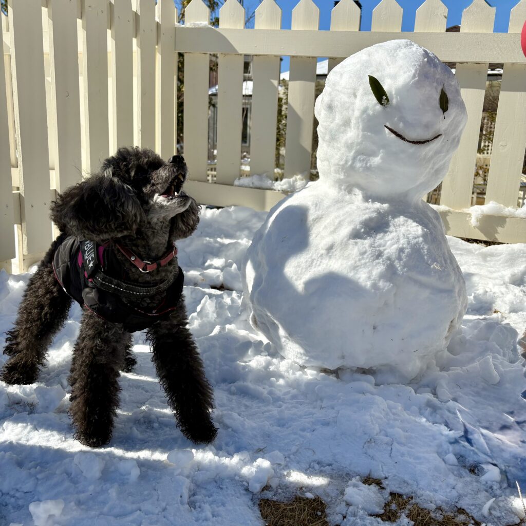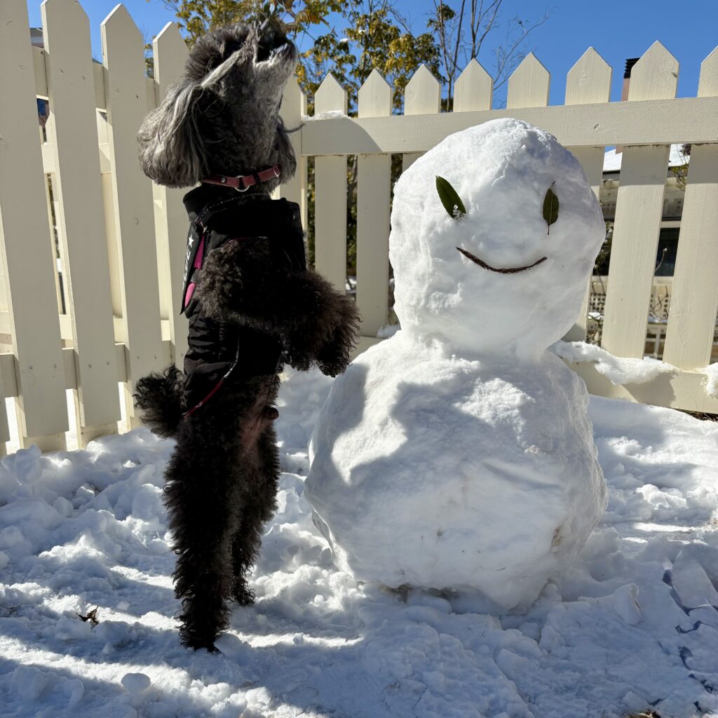 ちなみに昼間、雪だるまに全力抗議していた犬は