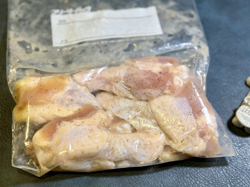 ③ ジップロックに入れて塩・酒・生姜・にんにくを揉み込む