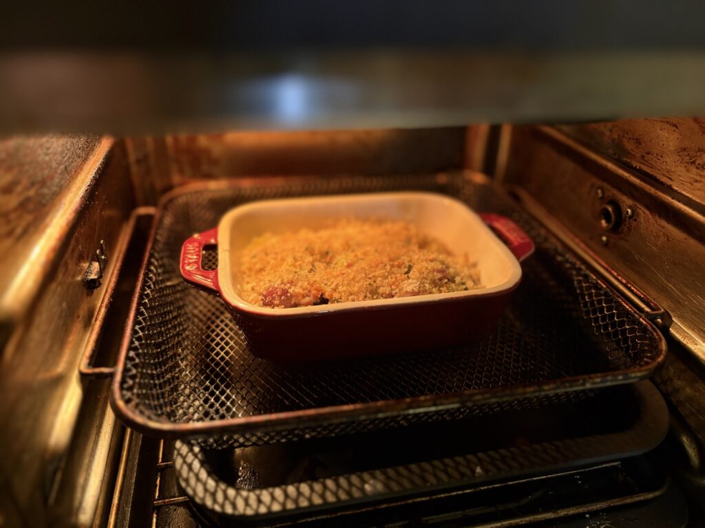 ・パン粉に油を当てる → “揚げたような焼き”になる