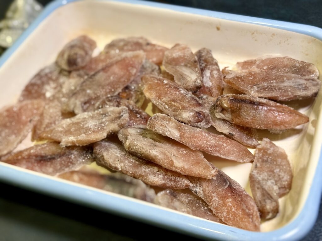 今回使ったのは、下処理済みで、しかも**-30℃で4日間冷凍処理されたホタルイカ**。