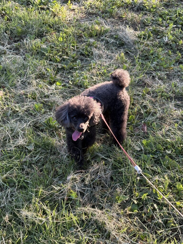今朝のお散歩は、光と芝生が織りなす特別なステージ。