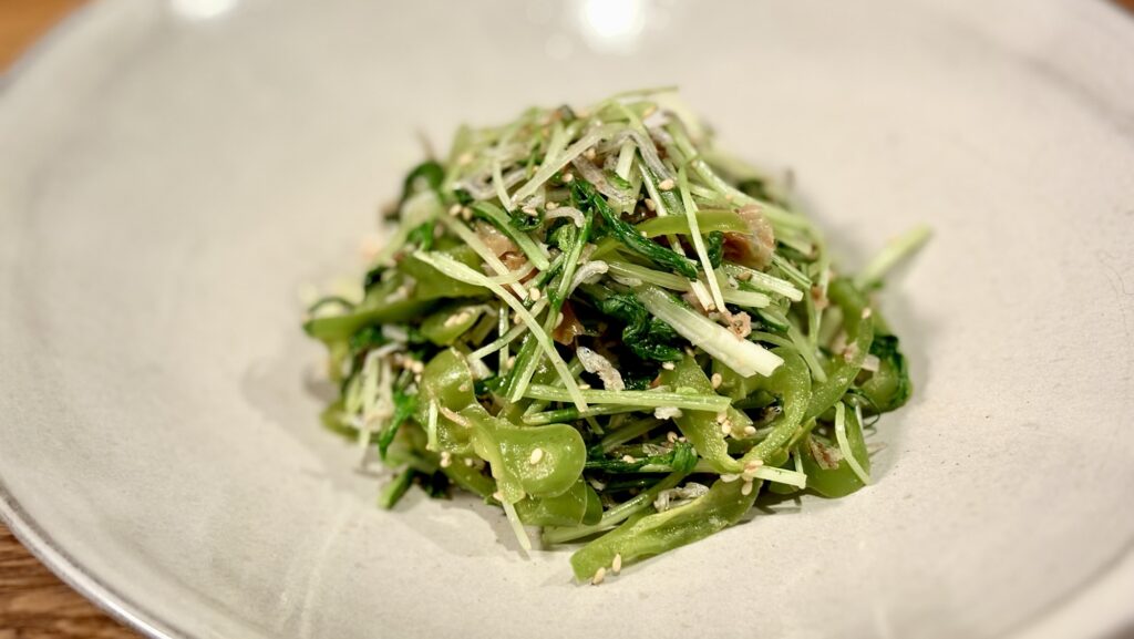 ピーマンと水菜とちりめんのサッと炒め(フォー出汁仕立て)